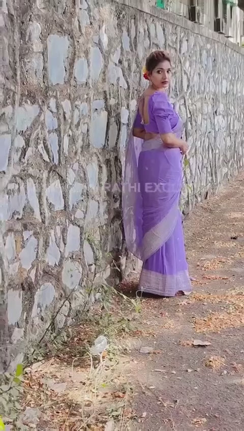 Elevate your everyday elegance with the BYAARA Pastel Grace Saree in a soothing lavender hue. Designed with a delicate silver woven border, this saree offers effortless charm and refined sophistication.